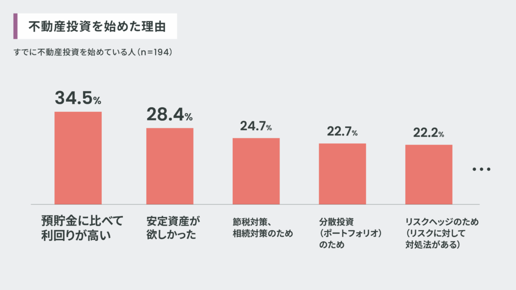 ◉ 不動産投資を始めた理由は「高い利回り」と「安定資産」